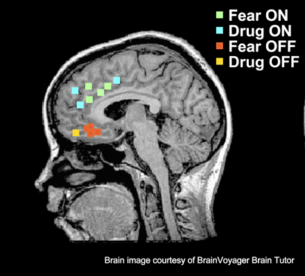 + in these regions in anticipation of a “to be ignored” fearful stimulus, suggesting that these subjects are employing VLPFC activity to help them suppress the interfering influence of the threat related stimulus when the emotional information is not relevant to the task. However, people high in anxiety did not recruit these regions to help them ignore the fearful stimuli, suggesting a failure in top down regulatory control in anxiety