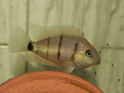 Opet parova cichlida. Samec je o neco barevnejsi, ma vyrazne delsi cipy ploutvi. Trou se na stropy ukrytu, mladata chrani prenasenim v tlame. V pripade pominuti nebezpeci odkladaji mlade do vyhloubenych jamek v substratu.
