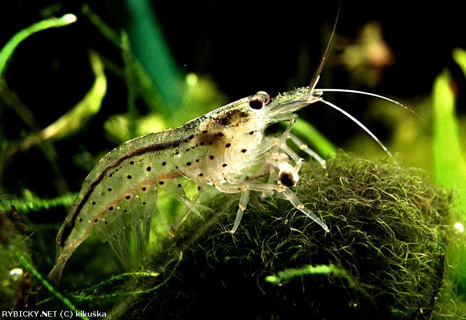 Uklidova ceta v poctu 4 kusu. Rady se schovavaji v rostlinach nebo vse pozoruji z vrcholu molitanoveho filtru. K rozmnozovani potrebuji brakickou vodu, tudiz bez radneho pozorovani a manipulace nebude pocet tohoto druhu rust. Pokud uvidite v akvariu svlecku, nelikvidujte ji, krevetky potrebuji nejaky zdroj vapniku a svlecku spotrebuji.