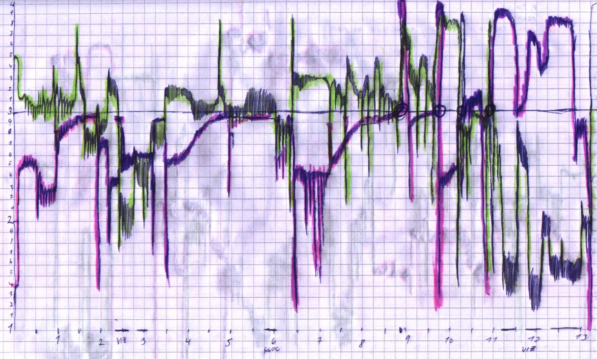 - T green line = dream scene , no loger flashes of image but scene (may be caused by visualization , automatic asociation about thought tema , or themselfs)