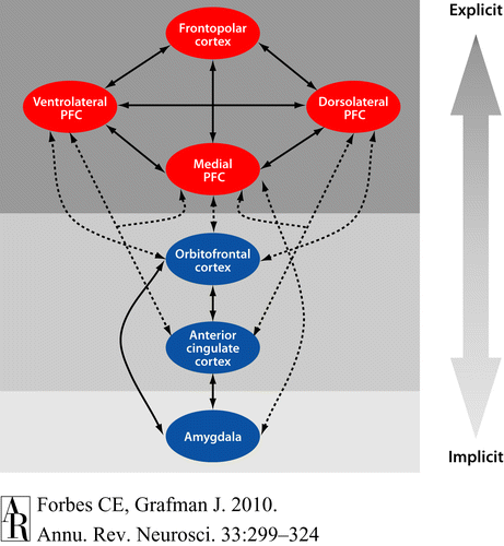 - multiple PFC regions, including the lateral OFC/VLPFC, control emotional experience and expression
